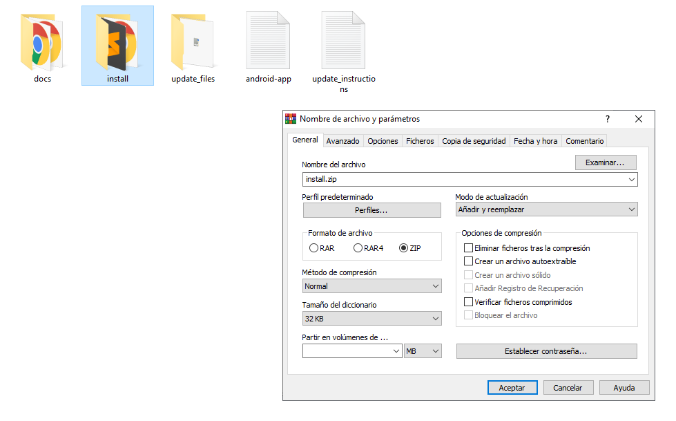 * Click on upload file and look for the install.zip file that you compiled in step 1.